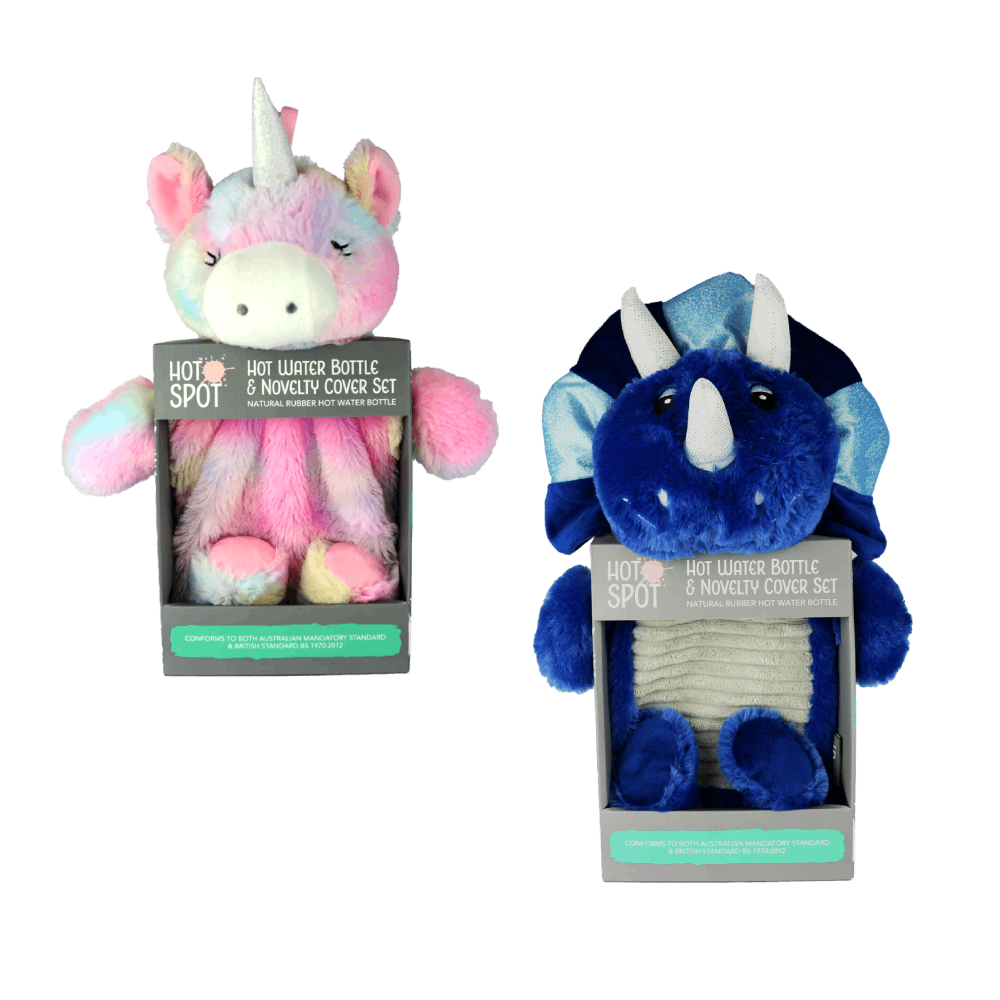 Novelty Hot Water Bottle – Dino, Unicorn – [Pack x 6]