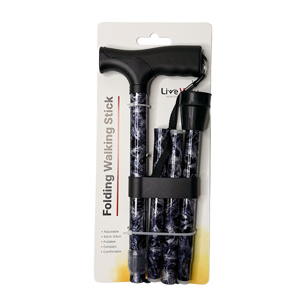 Walking Stick – Folding – Black Marble – 33″- 37″